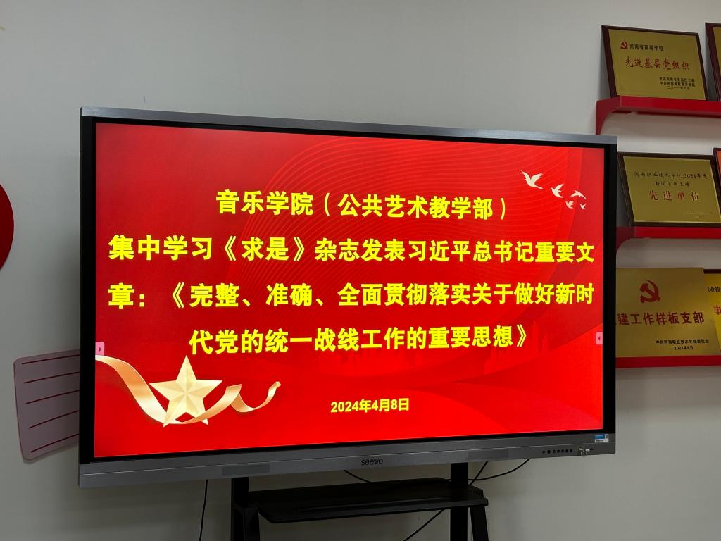 2024年4月8日,yL23411永利集团官网(公共艺术教学部)组织全体党员教职工在403会议室集中学习《求是》杂志发表的习近平总书记《完整、准确、全面贯彻落实关于做好新时代党的统一战线工作的重要思想》的重要文章。会议由党总支书记张俊峰主持。