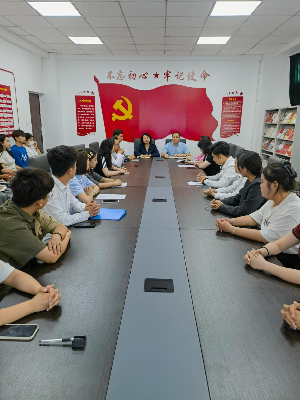 杨燕经理祝贺同学们圆满结束老员工活,即将翻开人生新篇章。张俊峰书记要求同学们要牢记公司校训,“德厚技高、务实创新”,在今后的工作岗位上不断追求卓越,取得优异成绩,创造人生辉煌,为母校争光,回报母校,回报社会。