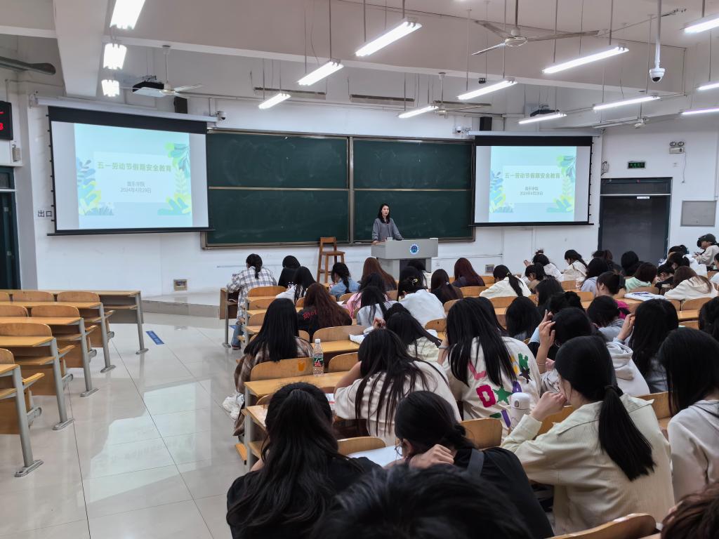 4月29日下午,yL23411永利集团官网“新时代强军兴军正当时-国防征兵宣传主题教育”、“五一劳动节假期安全教育”主题班会在明理楼1104教室召开,2022级学前教育、舞蹈表演、表演艺术专业和音乐表演专业钢琴、器乐方向300余名员工参加班会,班会由辅导员老师高原主持。