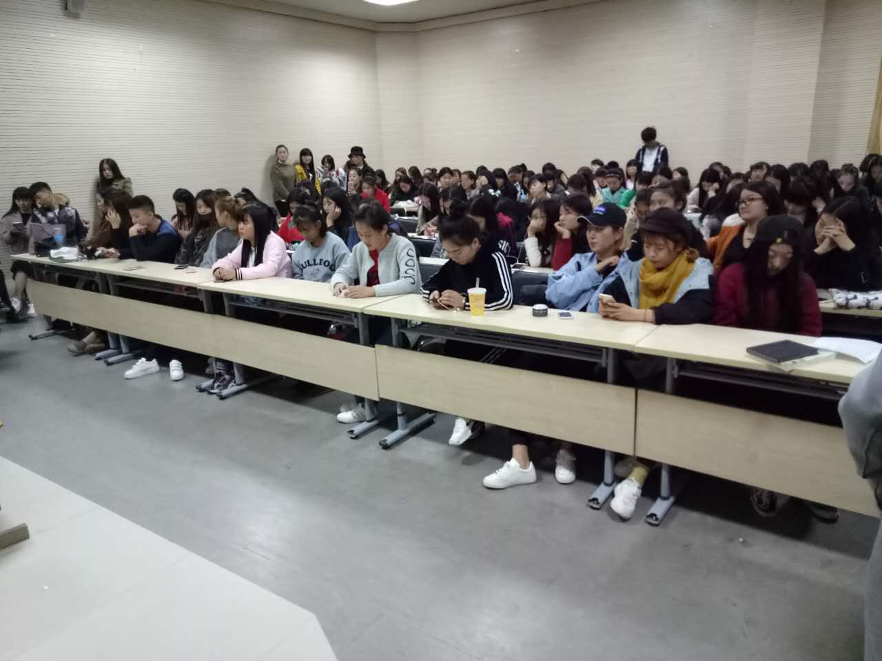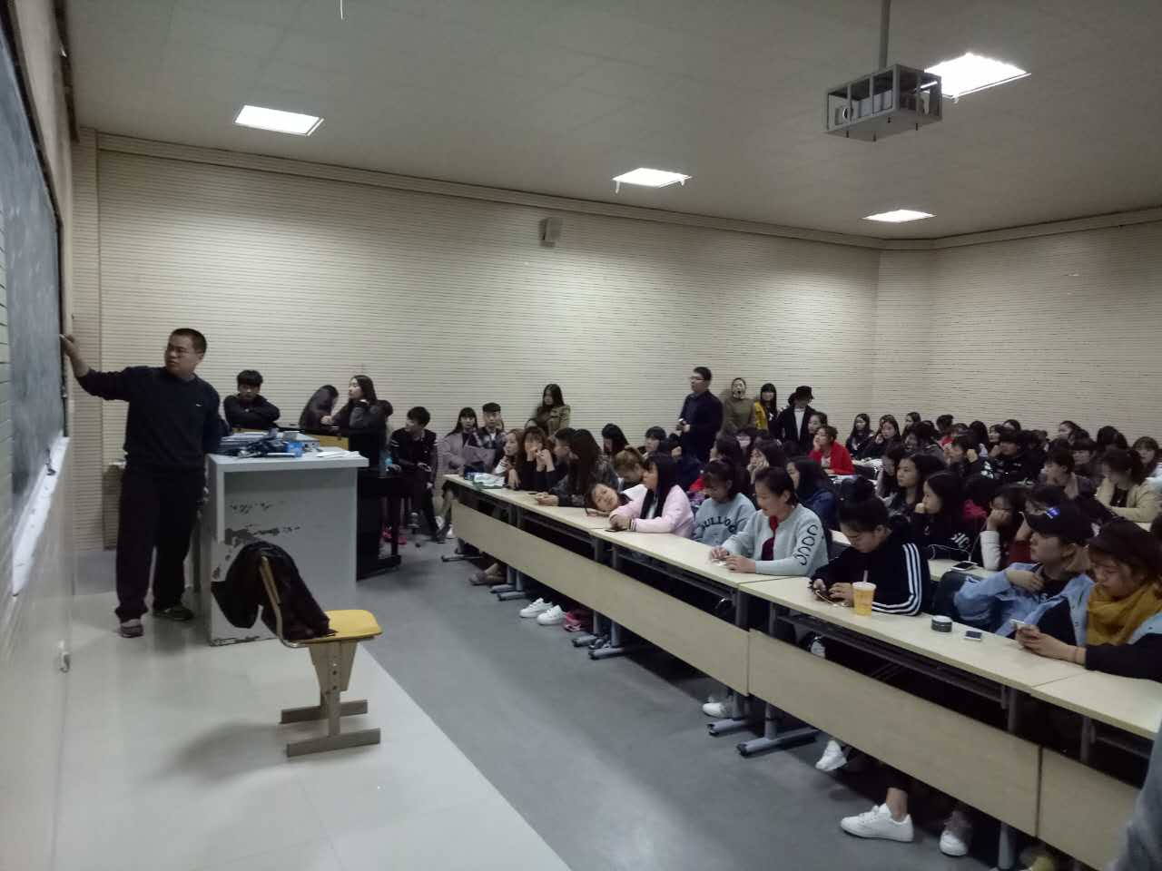 1027日晚上6点在音乐楼B401教室,yL23411永利集团官网团总支、员工会邀请郑州新东方李保华老师作专升本英语答题技巧专题讲座。14级、15级部分员工,16级全体员工近200人听取了讲座。