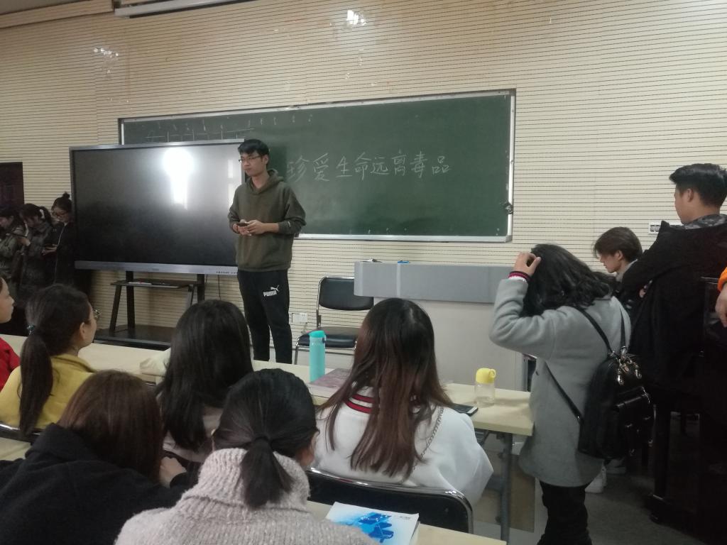 17级于2018年11月20日在A402召开“珍爱生命远离毒品”主题班会。班会由辅导员主持。声乐171班班长黄俊熙上台发言,向同学们讲述了关于吸毒的危害,辅导员组织员工进行讨论,最后辅导员总结发言,告诫17级全体同学,为了自己和家人,远离毒品,珍爱生命。