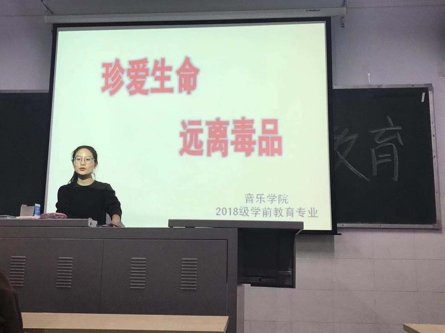 辅导员利用PPT展示了毒品的相关知识,告诫同学们要提高分辨是非的能力,并举出了大量生动真实的例子使员工们意识到毒品祸害无穷、危害生命、破坏家庭幸福。同时教育同学们要远离毒品、珍爱生命。