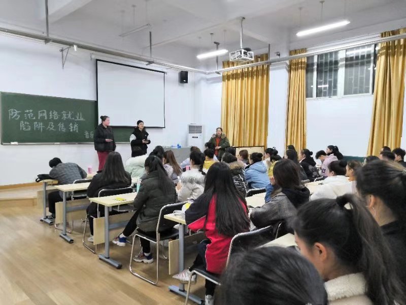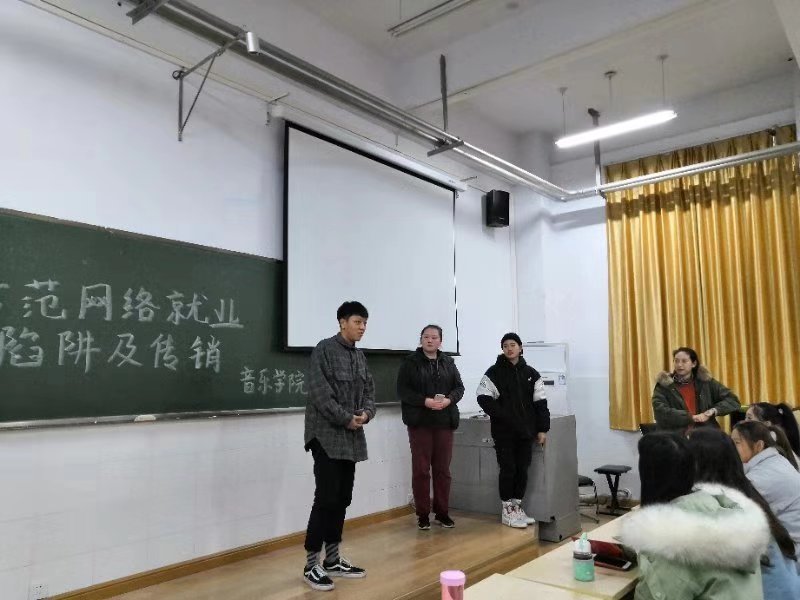2018年12月6日下午,2018级舞蹈表演与表演艺术专业在B101召开“防范网络就业陷阱及传销”主题班会。班会由辅导员陶园园主持。