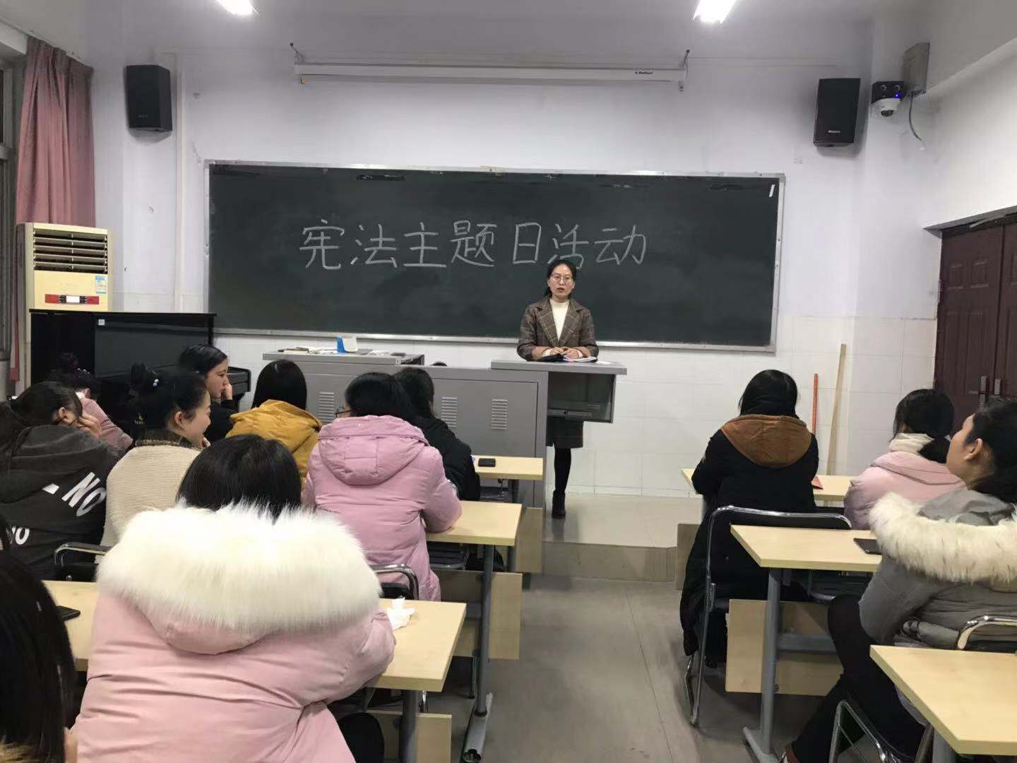 2018年12月4日是第一个国家宪法日,按照教育部和公司文件精神,并结合员工的实际情况,18级学前教育专业员工开展了国家宪法日教育活动,辅导员老师围绕国家宪法日主题,组织全体员工集中学习宪法知识,促进全体员工由知法向懂法、守法、用法再迈进坚实一步。