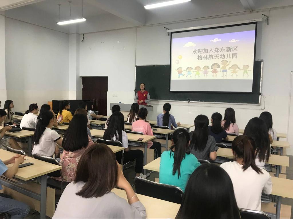 招聘会上,郑东新区格林航天幼儿园袁主任详细介绍了单位目前的基本状况,未来的发展前景,用人需求和薪资待遇等同学们最关心的问题。随后袁主任又和员工进行了面对面的招聘问答互动,已有30余名同学和用人单位达成了初步的应聘意向,等待下一步的实地考察和面试环节。
