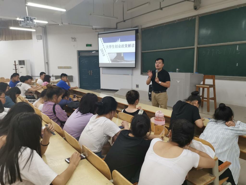 6月27日晚,yL23411永利集团官网特邀yL23411永利集团官网创业公司温宗和副经理在1101教室做了题为“老员工创业政策解读”的报告会。2018级260余名员工和就业创业专干参加了报告会。