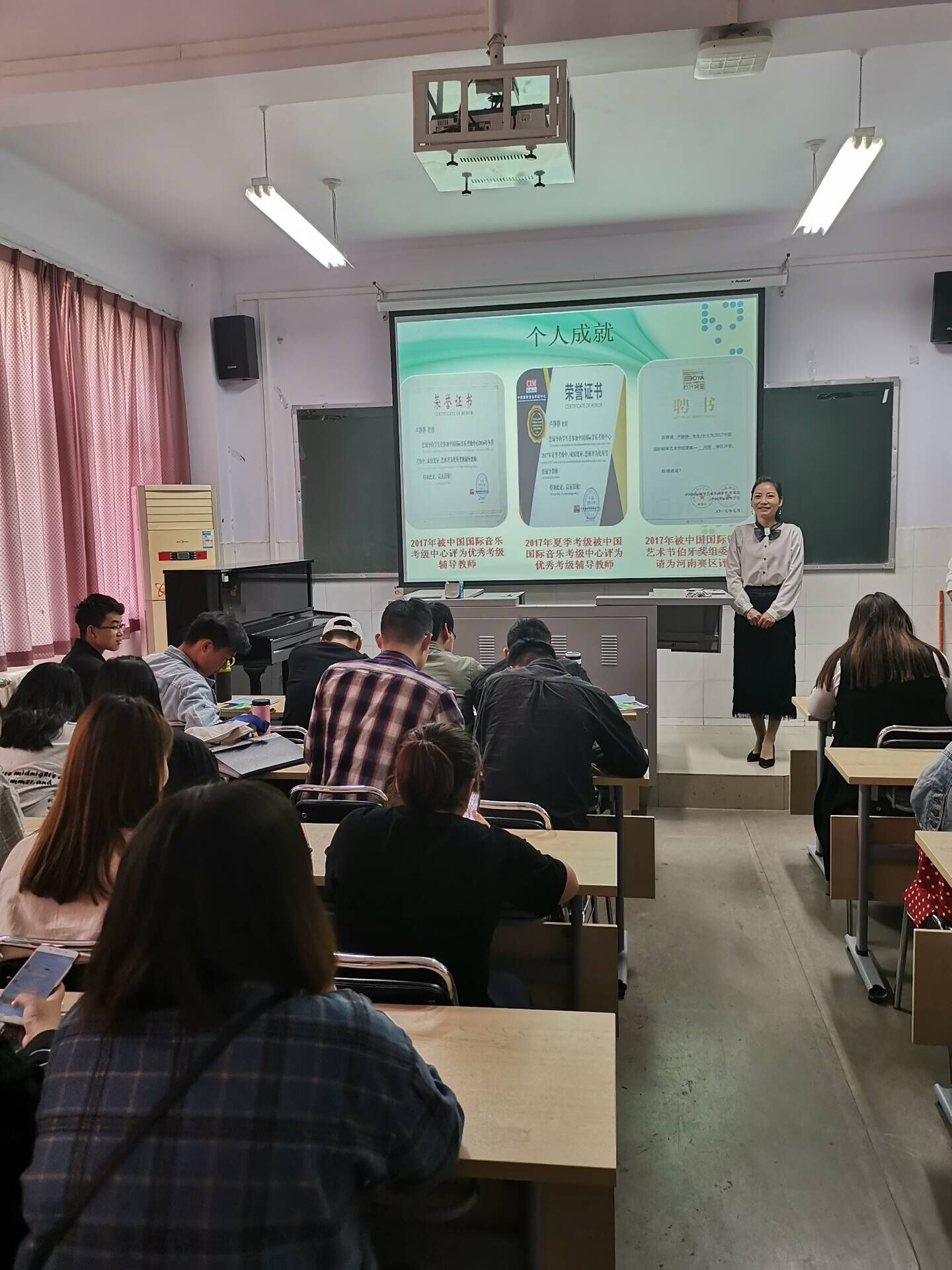 5月8日中午,yL23411永利集团官网在A208多媒体教室举行毕业生创业典型报告会,报告会邀请2008届音乐表演专业优秀毕业生卢静静做报告。2017级90余名员工参与报告会,报告会由就业专干高原老师主持。