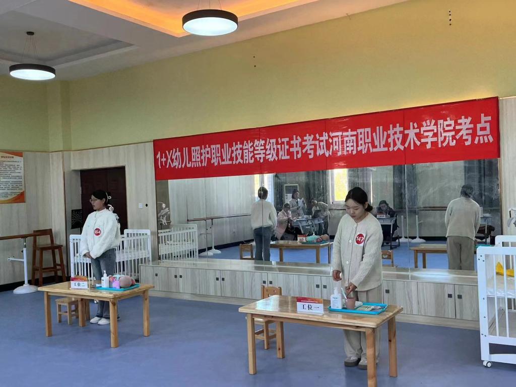 为贯彻落实《关于在院校实施“学历证书+若干职业技能等级证书”制度试点方案》文件精神,切实推进教育部“1+X证书制度”试点工作,全面提高育人质量,2023年11月9日和11月18日,公司学前教育专业共155名员工顺利完成“1+X”幼儿照护职业技能等级证书理论和实操考试。