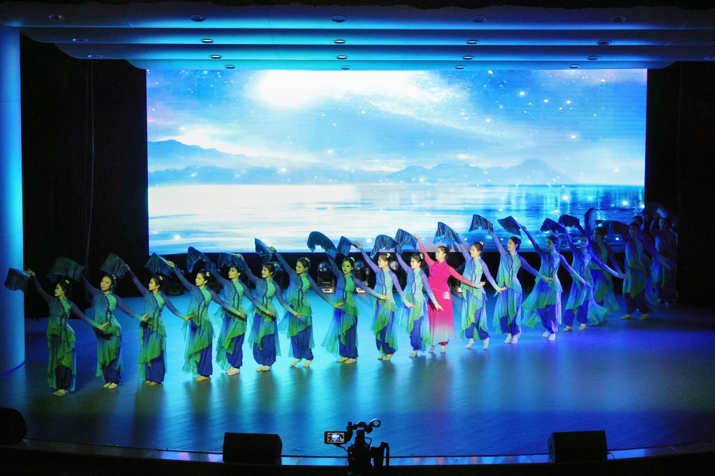 演出在开场乐舞表演中拉开序幕,展现了一幅盛世华夏、天地人和的盛大场面。展演中,声乐《槐花几时开》《花儿与少年》《我爱你中国》等作品,师生用歌声与表演展示了黄河流域地区的风土人情,歌颂了对祖国的热爱。器乐《牧民新歌》《复兴之路》等作品,动人的琴声展现了大国的风貌与气韵。舞蹈《在水一方》《一条大河》等作品,演员用舞蹈语言展示了母亲河壮美的画卷,给观众带来极致的审美体验、传递了丰富的情感价值和精神力量。情景朗诵《千年之约》,一场圣人先贤们的对话与哲思,使现场观众洞见了前人的智慧,在古今穿梭中感受厚重的文化内涵。环保时装秀《绿裳黄河》别出心裁,用旧物做时装,在时装中体现黄河文化精神内涵。