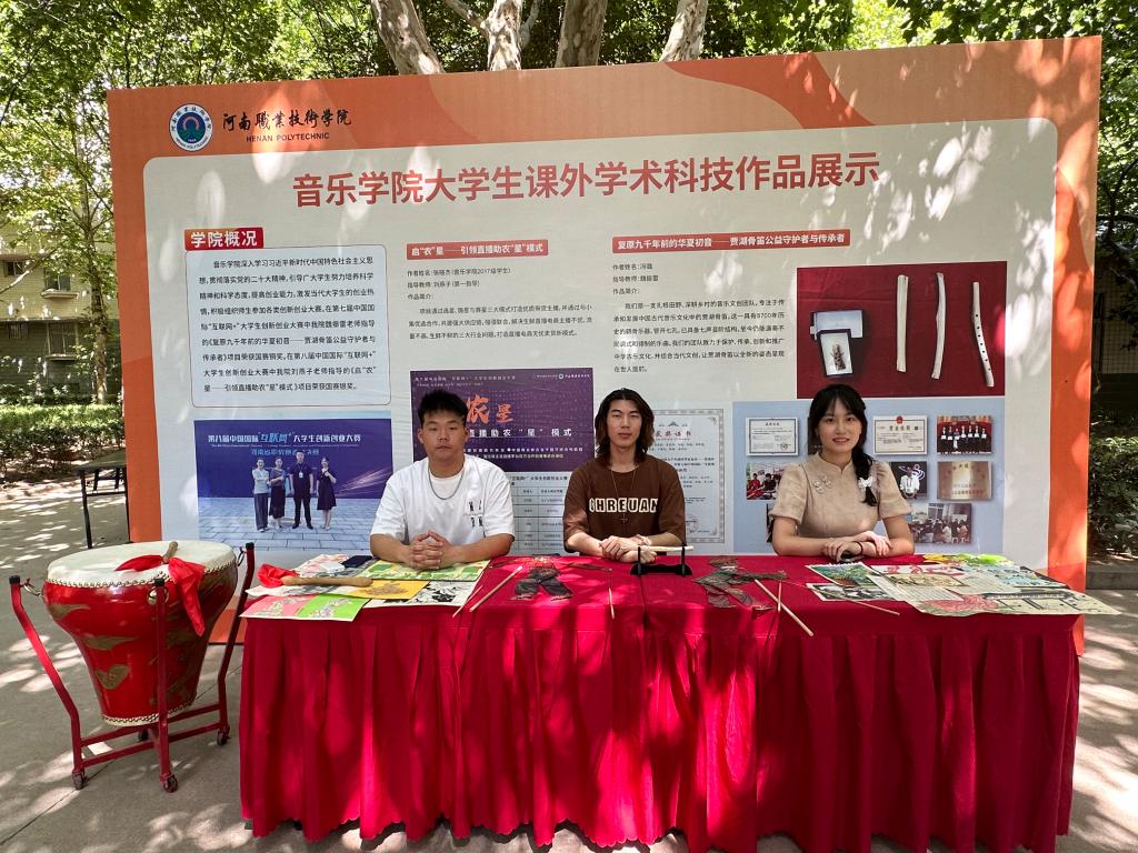 公司展示了魏振雷老师指导的《复原九千年前的华夏初音——贾湖骨笛公益守护者与传承者》项目、刘燕子老师指导的《启“农”星——引领直播助农“星”模式》项目。同时向全校师生展示传统皮影、花盆鼓等中国传统文化项目。秉持保护、传承、创新和推广中华传统文化与现代科技相结合,促进不同学科间交流、培养员工创新意识的重要载体。