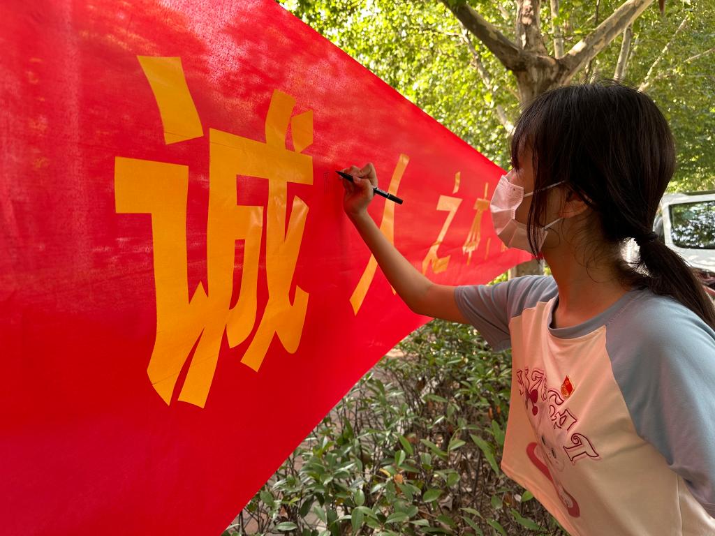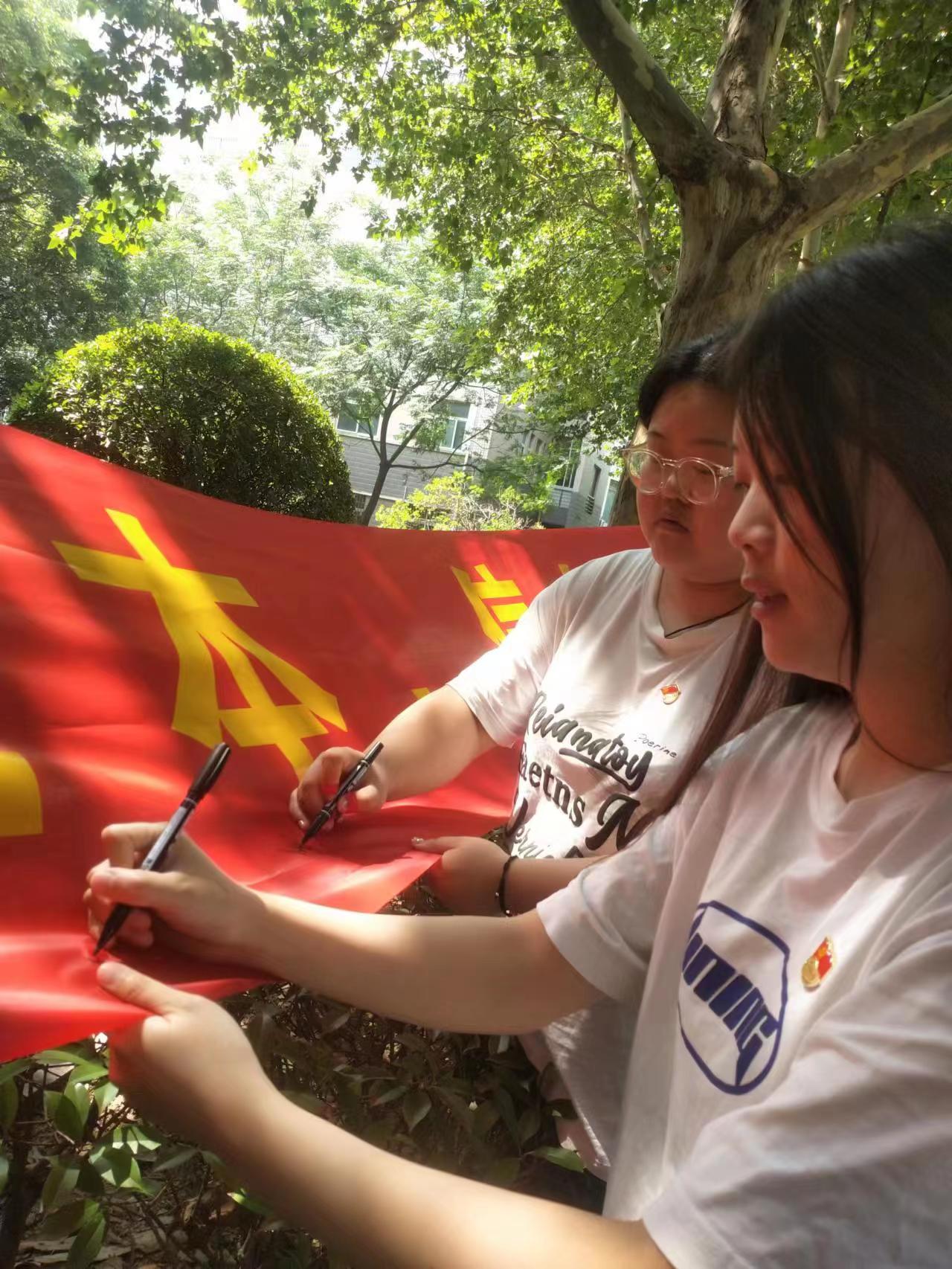签字仪式现场,各位员工党员郑重的在横幅上留下了自己的名字,并积极呼吁同学们参与进来。在员工党员的感染下,周围的同学们纷纷驻足观看,并拿起签字笔在横幅上郑重地签下了自己的名字,记录了自己的承诺。签字不仅仅是一种仪式,更重要的是为了弘扬道德风尚。希望通过党员模范带头作用,引领班级同学在考试时遵守考场纪律,诚信考试,营造良好的考试氛围。