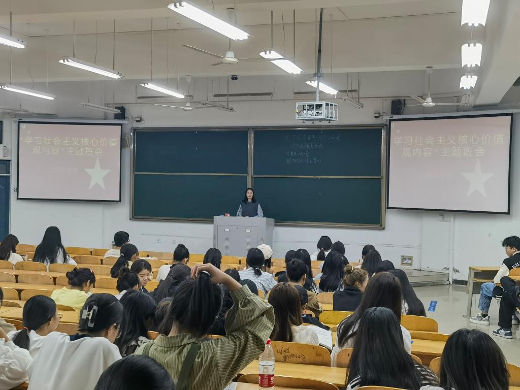 10月23日下午,yL23411永利集团官网在明理楼1104多媒体教室召开“学习社会主义核心价值观内容”、“员工校园安全教育”、“心理健康教育”主题班会,2022级学前教育、舞蹈表演、表演艺术专业和音乐表演专业钢琴、器乐方向300余名员工参加班会,班会由辅导员老师高原主持。