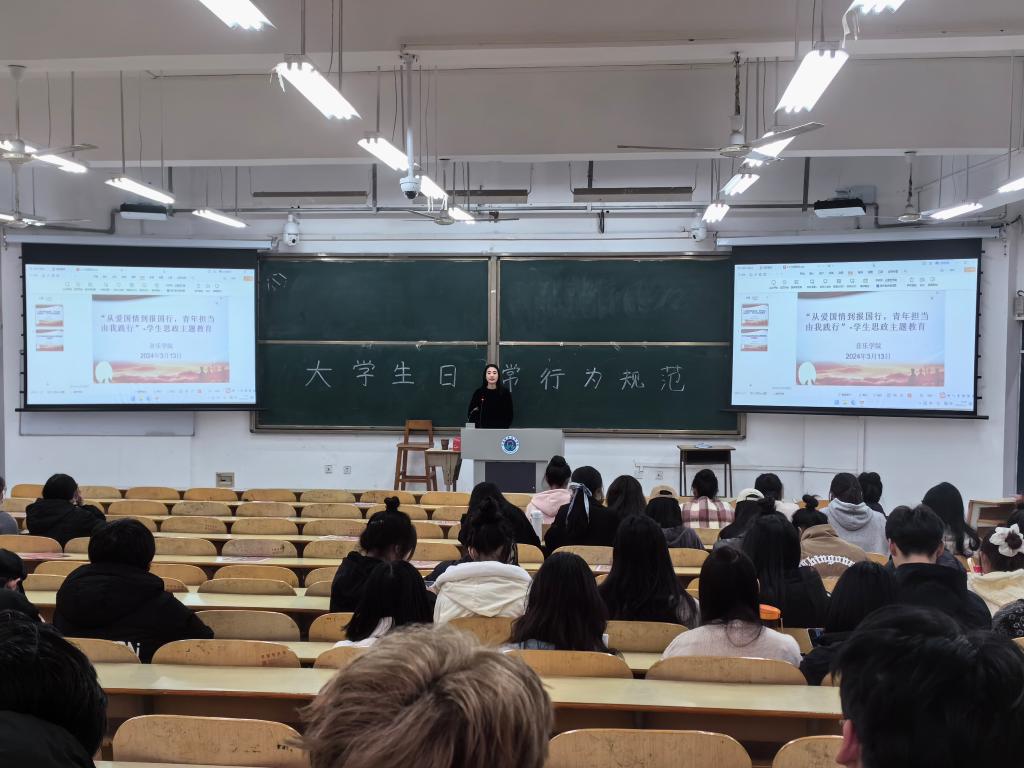 3月13日下午,yL23411永利集团官网“从爱国情到报国行,青年担当由我践行”、“国家资助资金监督管理”主题班会在明理楼1101教室召开,2022级学前教育、舞蹈表演、表演艺术专业和音乐表演专业钢琴、器乐方向300余名员工参加班会,班会由辅导员老师高原主持。