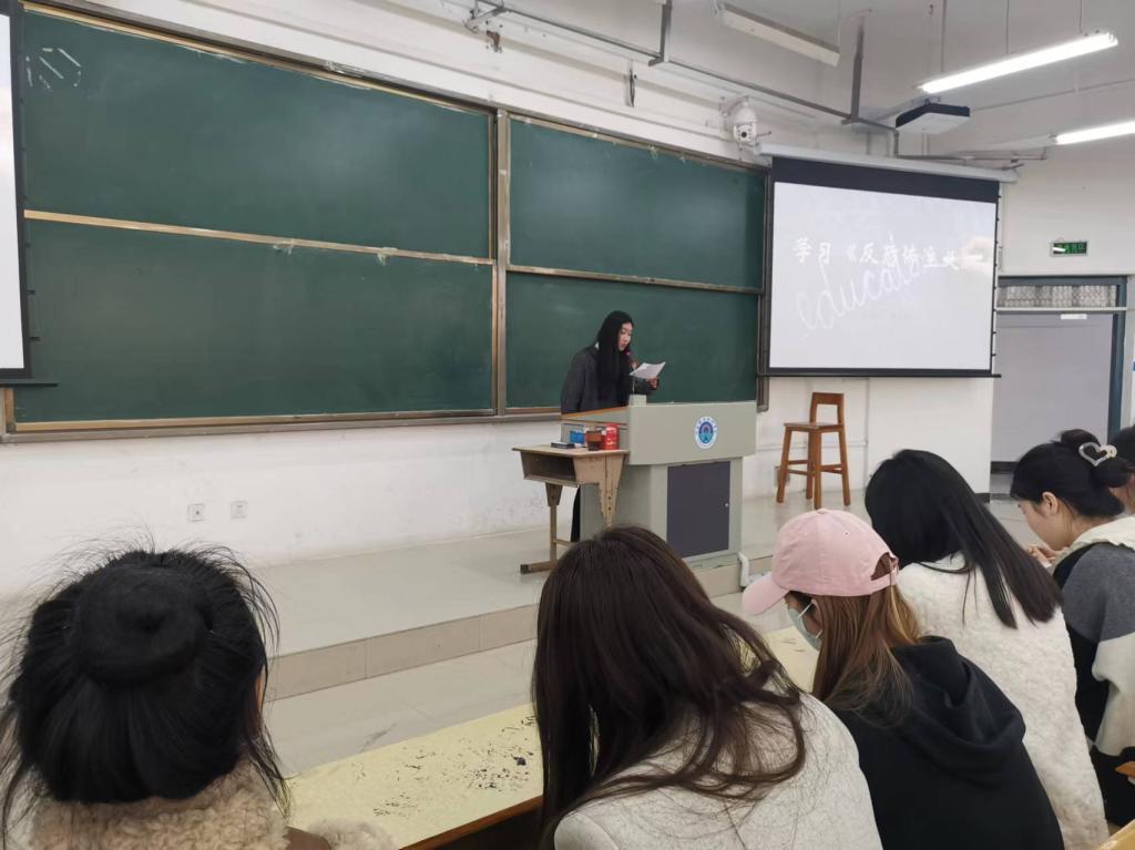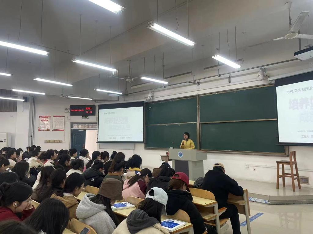 2024年3月21日中午在1101教室,2023级员工组织开展了“老员工日常行为规范”和“学习《中华人民共和国反恐主义法》”为主题的班会。班会由辅导员黄晶晶主持。