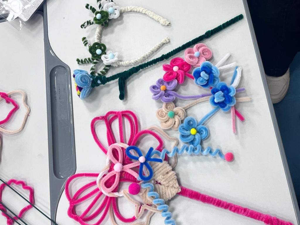 活动在雅行楼B101教室拉开帷幕,一排排色彩斑斓地扭扭棒整齐排列,等待着同学们用巧手赋予它们新的生命。活动精心设计了“动物世界”“欢乐魔法空间”等创意主题,每个主题都结合快乐元素与扭扭棒的灵活性,激发同学们的创作灵感。员工们发挥想象,将扭扭棒扭曲、缠绕,制作成可爱的小蜘蛛、魔法棒、花束,每一件作品都栩栩如生,展现出对生活的热爱与尊重。