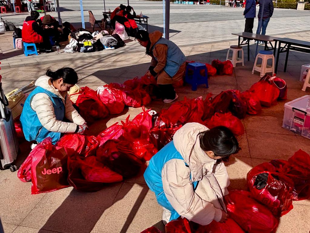 “同学,考试证件再检查一遍哦!”“这里有备用文具,需要随时来取!”身穿蓝色马甲的志愿者化身“能量补给站”,微笑递上文具袋、矿泉水,耐心解答各种问题,悉心提醒每位考生进场前的注意事项,温馨提供手机存放、行李寄存等服务,引导考生安全有序进入考场,为师兄师姐们加油打气。